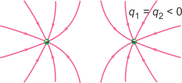 Deux charges identiques (mêmes signes mêmes valeurs)
