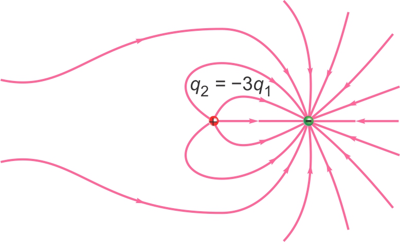 lignes de champ, aucune charge positive n'est présente ailleur sur