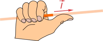 lorsqu'on place le pouce dans la direction du courant (donc pouce vers la