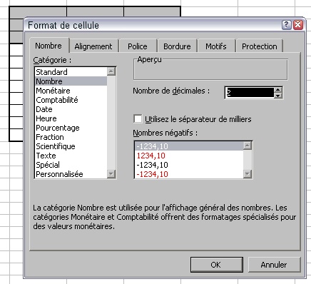 nombre fixe de décimales, sélectionner les cellules concernées puis à